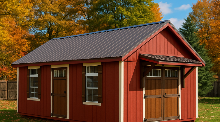 All Country Cabins buildings come standard with a durable metal roof. They are resistant to weather conditions, such as high winds, heavy rainfall, and intense sunlight, feature large overhangs to prevent water damage, and keep sheds cooler in the summer. We offer a 40-year warranty on our Signature Series roofs because we’re confident in the superiority of our metal roofing over other materials like asphalt or wooden shingles.