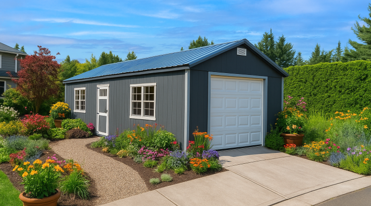 Country Cabins offers two high-quality garage door options for our storage sheds and detached garages. Our standard-sized paneled garage doors combine durability with aesthetic appeal and can be equipped with automatic openers for your convenience. Our roll-up garage doors, available in three sizes, offer a space-saving design that coils up neatly above the opening. Both door types are made from sturdy, painted steel, enhancing security and weather resistance.